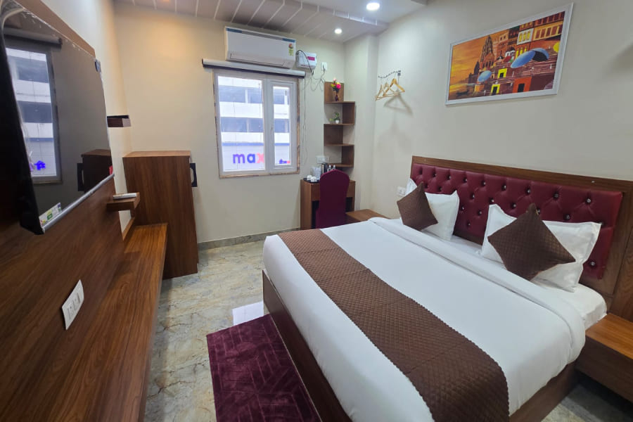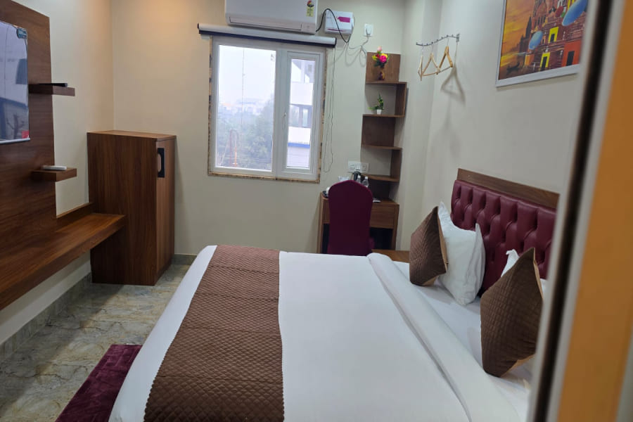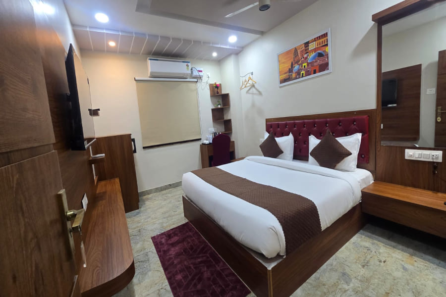 The Super Deluxe Room at Hotel Vindhya Ganga Inn, Sarnath Varanasi offers a perfect blend of spacious comfort, elegance, and modern convenience, making it an excellent choice for guests who desire a premium stay. Tastefully designed with refined interiors and warm lighting, the room features a plush bed with quality linens, air conditioning, a flat-screen TV, comfortable seating, ample wardrobe space, and a well-appointed attached bathroom with modern fittings and essential toiletries. Large windows allow natural light to enhance the calm and relaxing ambiance, creating an ideal space to unwind after a day of visiting the sacred Buddhist sites of Sarnath or exploring the cultural richness of Varanasi. Ideal for families, couples, and leisure travelers, the Super Deluxe Room ensures a peaceful, luxurious, and memorable stay.