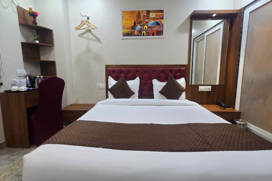 The Super Deluxe Room at Hotel Vindhya Ganga Inn, Sarnath Varanasi offers a perfect blend of spacious comfort, elegance, and modern convenience, making it an excellent choice for guests who desire a premium stay. Tastefully designed with refined interiors and warm lighting, the room features a plush bed with quality linens, air conditioning, a flat-screen TV, comfortable seating, ample wardrobe space, and a well-appointed attached bathroom with modern fittings and essential toiletries. Large windows allow natural light to enhance the calm and relaxing ambiance, creating an ideal space to unwind after a day of visiting the sacred Buddhist sites of Sarnath or exploring the cultural richness of Varanasi. Ideal for families, couples, and leisure travelers, the Super Deluxe Room ensures a peaceful, luxurious, and memorable stay.
